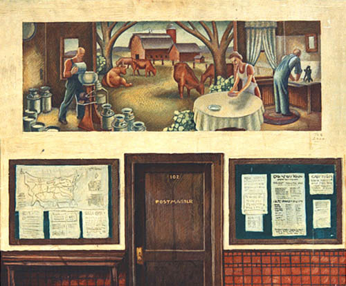 Most of the post office works of art were funded under the Treasury Department's Section commissions. Those works that were created using TRAP funds are so indicated. Although the WPA funded the construction of post office buildings, the artwork was not WPA but was usually produced under the Section or TRAP programs.