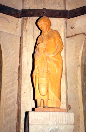 ""Pioneer Woman and Child" By Paul Buchner, wood sculpture, 1990 (not WPA) Located in the Main Lobby