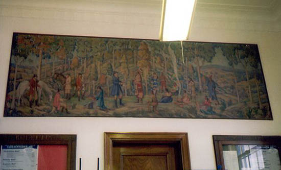 Most of the post office works of art were funded under the Treasury Department's Section commissions. Those works that were created using TRAP funds are so indicated. Although the WPA funded the construction of post office buildings, the artwork was not WPA but was usually produced under the Section or TRAP programs. Unless indicated, works of art are located in the US Post Office building.