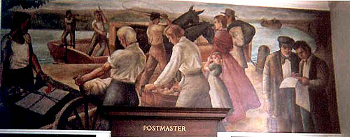 Most of the post office works of art were funded under the Treasury Department's Section commissions. Those works that were created using TRAP funds are so indicated. Although the WPA funded the construction of post office buildings, the artwork was not WPA but was usually produced under the Section or TRAP programs. Unless indicated, works of art are located in the US Post Office building.
