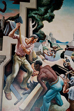 Although these murals are not actually WPA murals, the beauty and style of the Thomas Hart Benton murals in the Missouri State Capitol make them a significant example of New Deal artwork.