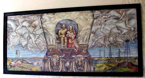 This mural formerly hung in the Worland, WY Post Office.