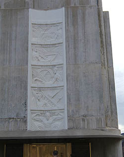 Hansen also created the concrete bas-relief series on both the Nevada and Arizona elevator towers (the two towers in the middle on top of the dam). |