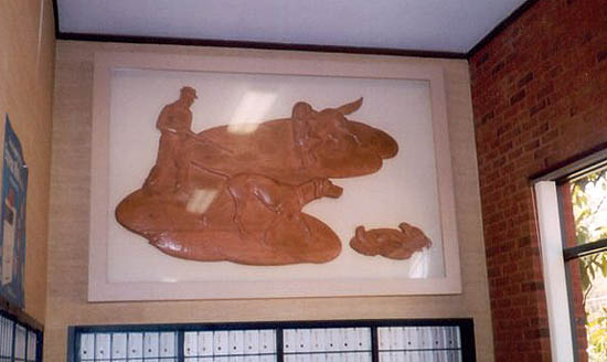Most of the post office works of art were funded under the Treasury Department's Section commissions. Those works that were created using TRAP funds are so indicated. Although the WPA funded the construction of post office buildings, the artwork was not WPA but was usually produced under the Section or TRAP programs. Unless indicated, works of art are located in the US Post Office building.