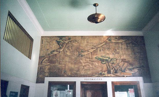 Most of the post office works of art were funded under the Treasury Department's Section commissions. Those works that were created using TRAP funds are so indicated. Although the WPA funded the construction of post office buildings, the artwork was not WPA but was usually produced under the Section or TRAP programs.