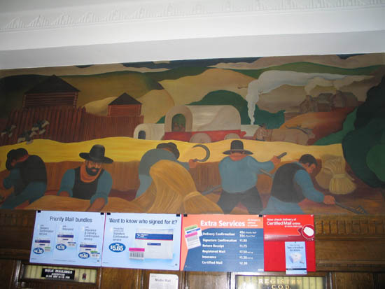 Most of the post office works of art were funded under the Treasury Department's Section commissions. Those works that were created using TRAP funds are so indicated. Although the WPA funded the construction of post office buildings, the artwork was not WPA but was usually produced under the Section or TRAP programs. Unless indicated, these works of art are located in the US Post Office building.