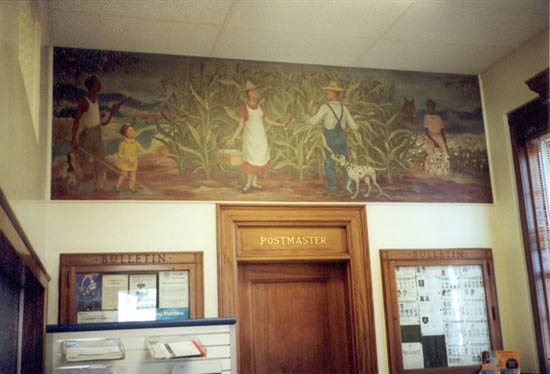 Most of the post office works of art were funded under the Treasury Department's Section commissions. Those works that were created using TRAP funds are so indicated. Although the WPA funded the construction of post office buildings, the artwork was not WPA but was usually produced under the Section or TRAP programs. Unless indicated, works of art are located in the US Post Office building.