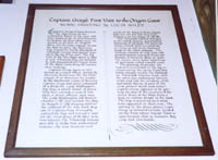 Captain Grays First Visit to the Oregon Coast Captain Gray is best known for discovery of the Columbia River in the year 1792. Four years prior to that however he became the first white man, on record, to set foot on Oregon's shore. On the same voyage he was the first to carry the American flag around the world. Residents of Tillamook County find special interest in the log of his visit. The log tells of the four days spent in what is now Tillamook Bay. He believed he had discovered the "Great River of the West," something all nations were seeking. Captain Gray, born in 1757, served as a naval officer during the American Revolution. For the first voyage of an American fur trader to the Northwest Coast of America Captain Gray was given command of a sloop the Lady Washington. His ship, a small vessel of about fifty feet, carried a crew of less than a dozen officers and men. The Lady Washington left Boston October 1, 1787 and reached the Bay on August 13, 1788 staying within the confines of the Bay until August 15. Captain Gray thoroughly explored the Bay and learned it was not the Great River of the West as he first believed. The Tillamook Indians were able to make him understand however, the true location and course of the Western River. Heavy fogs over the bar kept him from finding it on his voyage of 1787-88. The Tillamook Indians belonged to the Salish Nation and practiced flattening of the head. The painting shows a small child in a compression frame as well as the flattened heads of the adult Indians. The clothing consists of rush hats with pointed crowns and wide brims and blankets of wood rat skins or mats. The women wore cedar bark fringed petticoats called siwash coats. The painting illustrates the visit as it is recorded in the log reconstructing the scene from that rather meager record. The flatheaded Tillamook Indians trade with the white men exchanging berries, crabs and fish for trinkets, cloth and metal objects. A part of the crew gathers wood and water. Captain Gray appears to be getting an idea of the location of the Great River of the West from a map an Indian draws in the sand. The bay is pictured as it must have appeared at that time. The setting is the place where Capt. Gray is believed to have landed on the flats where Squaw Town is now located, that is between Bay City and Garibaldi. |
