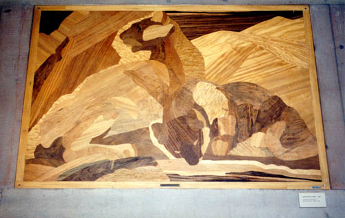"Mountain Lions" By Aimee Gorham, wood marquetry, 1937 Located in the Main Lobby